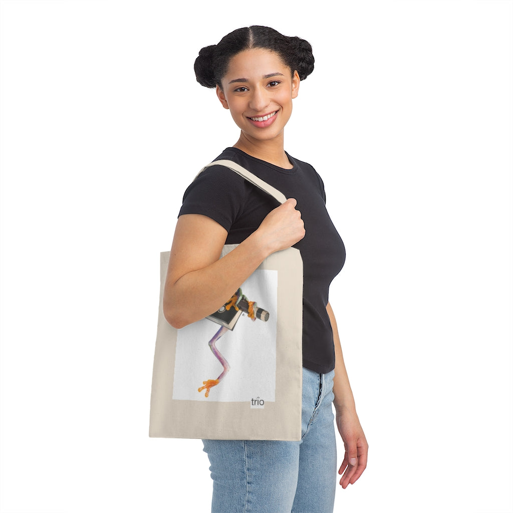 These Port Authority® tote bags features JonPaul the sexy tree frog hanging out on a bow frog. Measuring at 15.75"h x 15.25"w and with a handle length of 21.5”, these tote bags are with 100% cotton sheeting. Add their reinforced handle stitching to the mix, and you got a reliable bag rich in both practicality and durability.